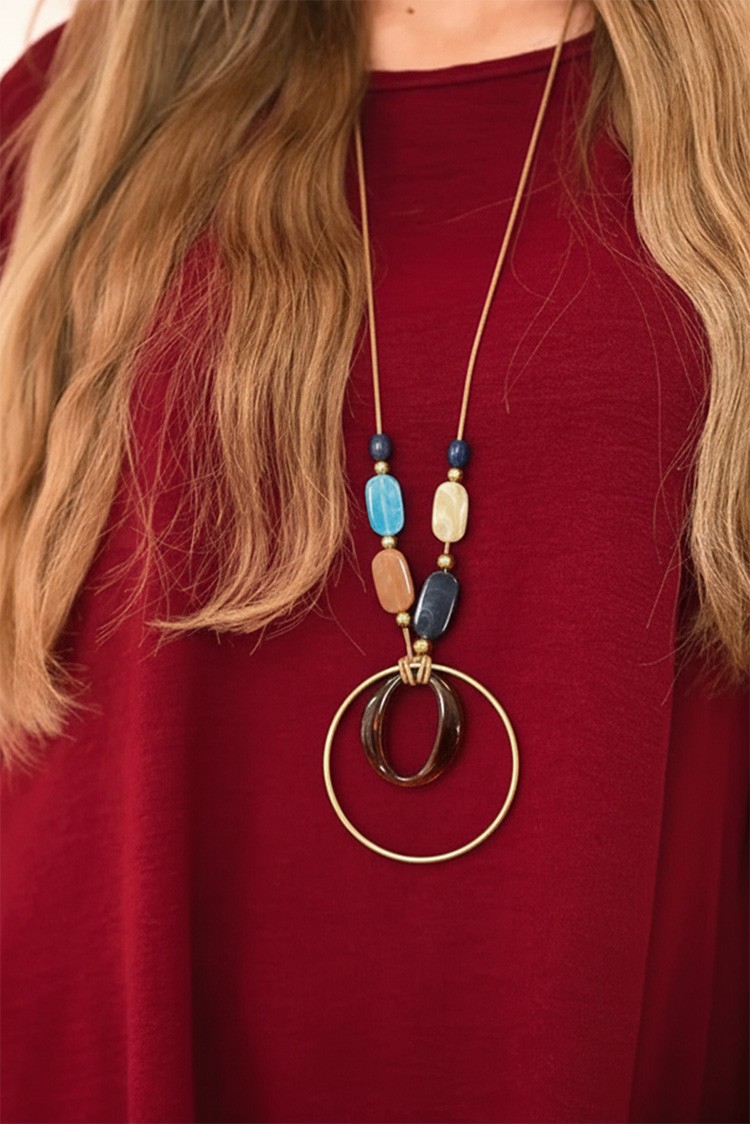 - Stílusos kétrészes szett - kényelmes nadrág és egy blúz látványos nyaklánccal, rendkívül alkalmas mindennapi életre.