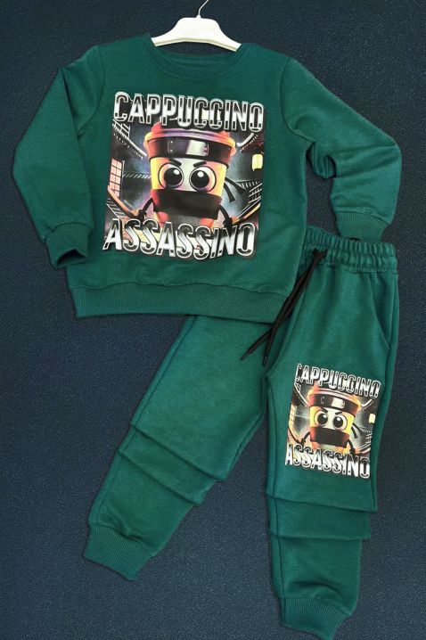 - Kétrészes gyermek szett, amely egyszínű, trendi mintás felsőből és nadrágból áll.