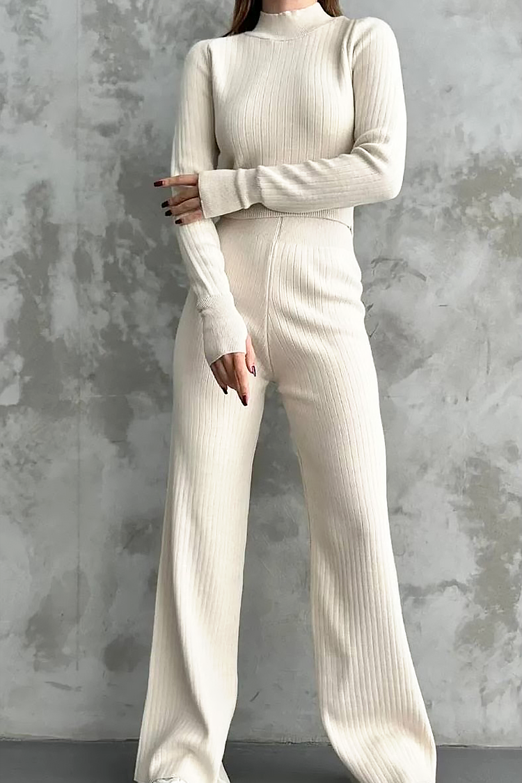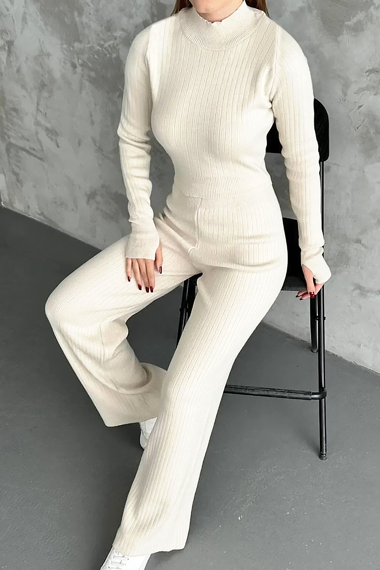 - A felső standard hosszúságú és testhezálló szabású, a nadrág pedig bő szabású és magas derekú.