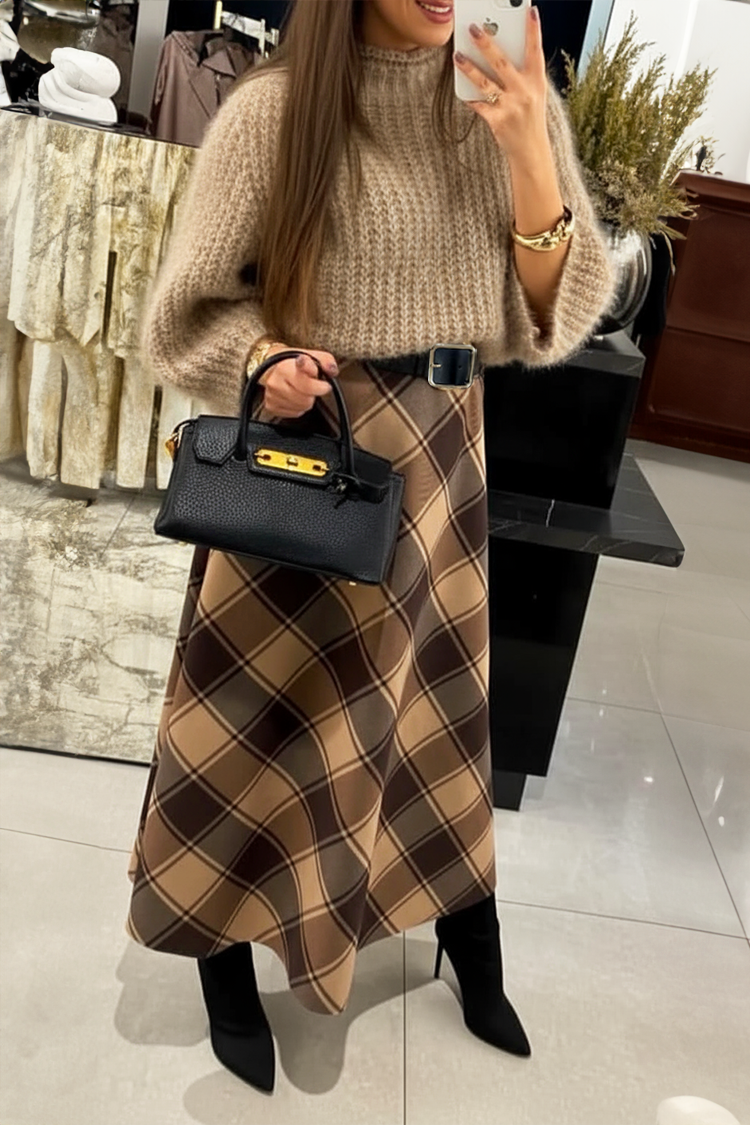 - A modell magas derekú, látványos kockás mintával és kényelmes szabással, amely minden alkatra illik.