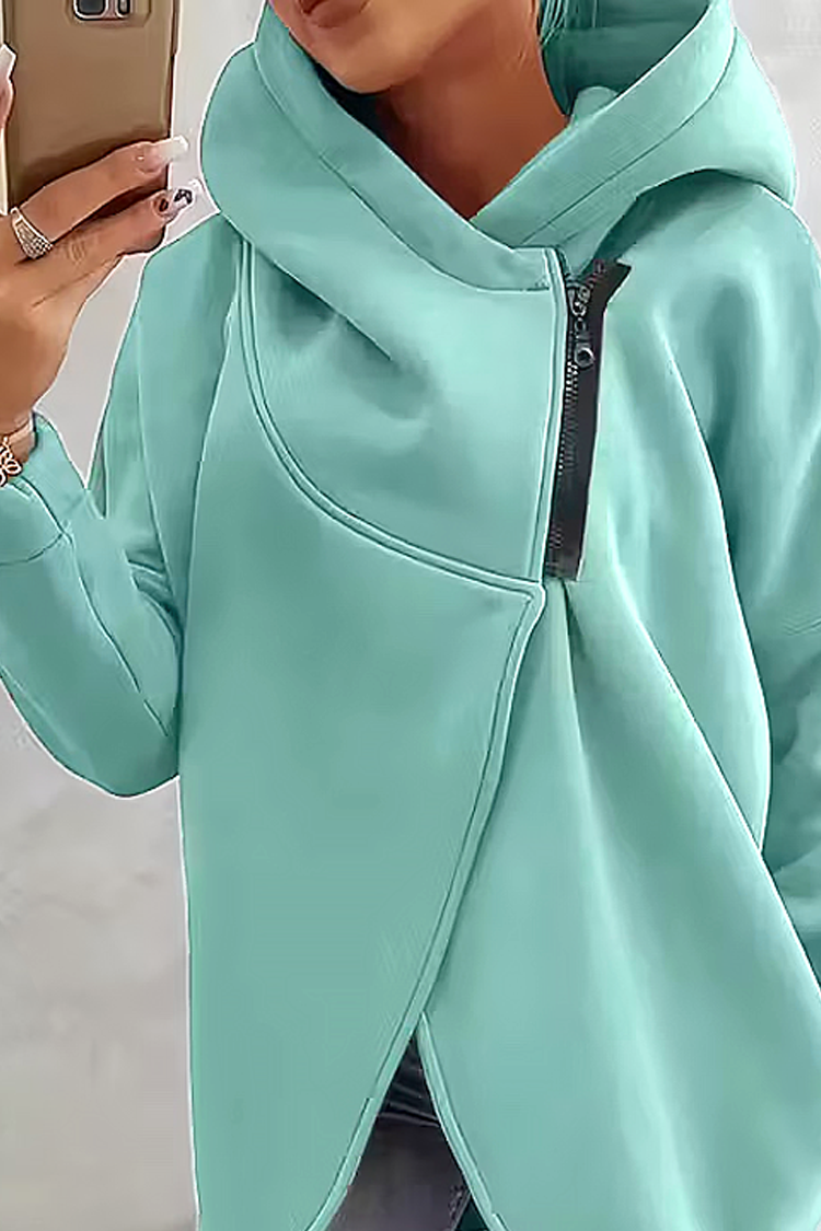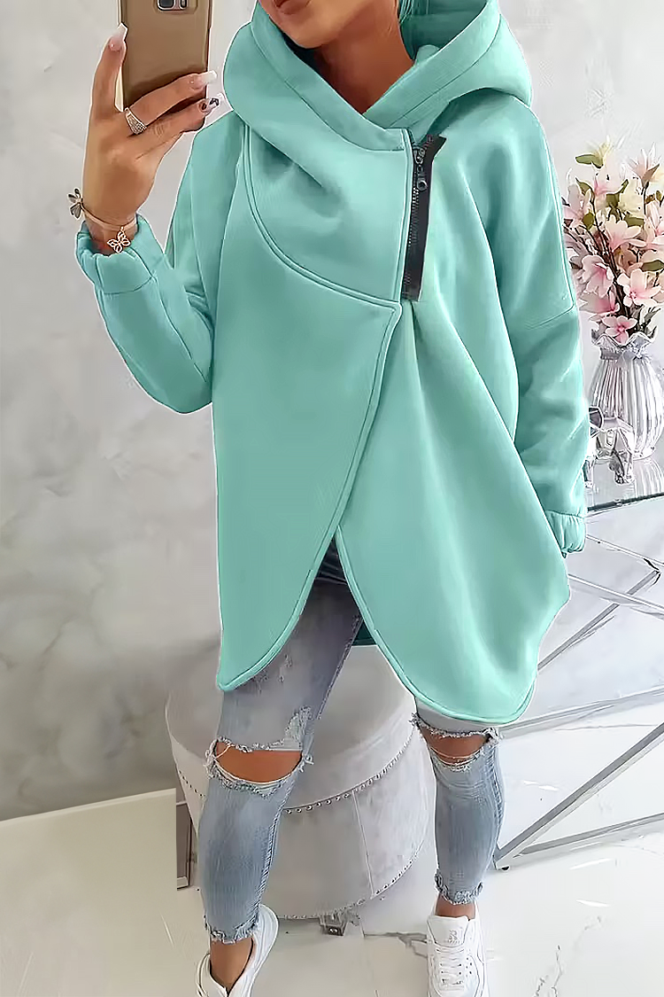 - Kényelmes szabással, minden alkathoz illik, aszimmetrikus cipzáras záródással és kapucnival.