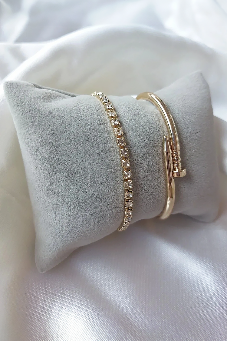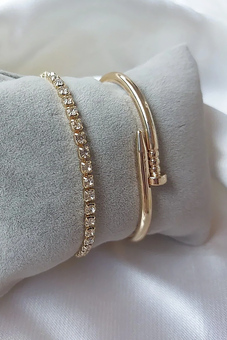 - Gyönyörű női karkötők egyedi kidolgozással, különböző arany színű elemekből.