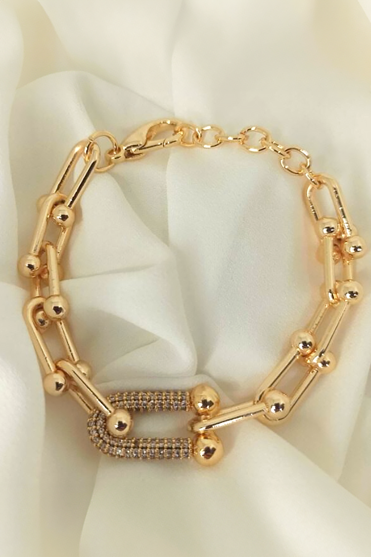 - Gyönyörű arany női karkötő egyedi kidolgozással, mindennapi viseletnek.