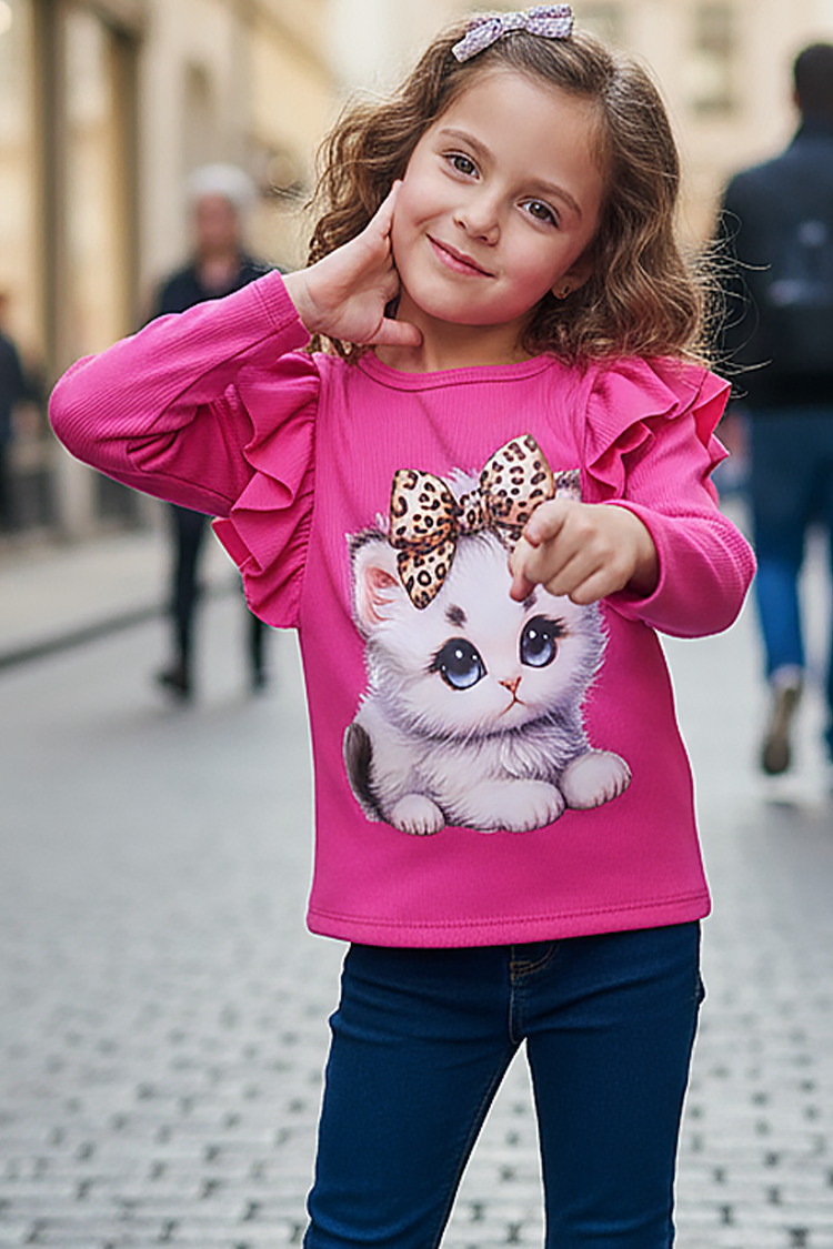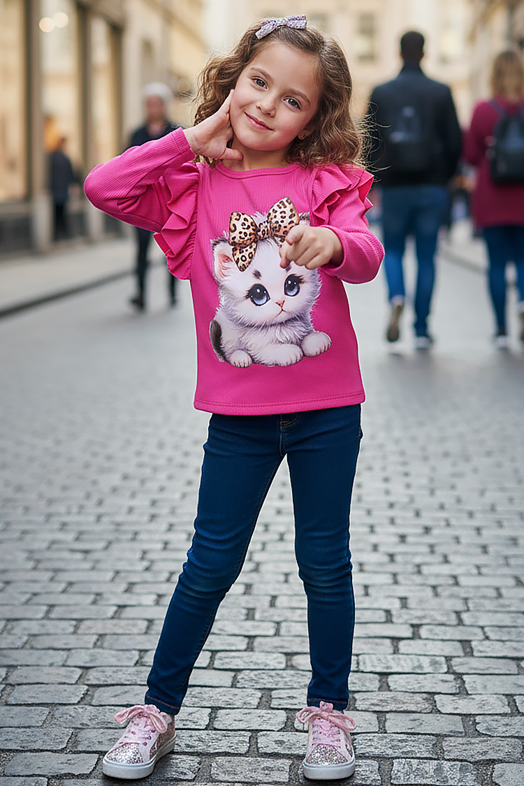 - Divatos felső kislányoknak mutatós és divatos mintával, amely alkalmas a mindennapi viseletnek.