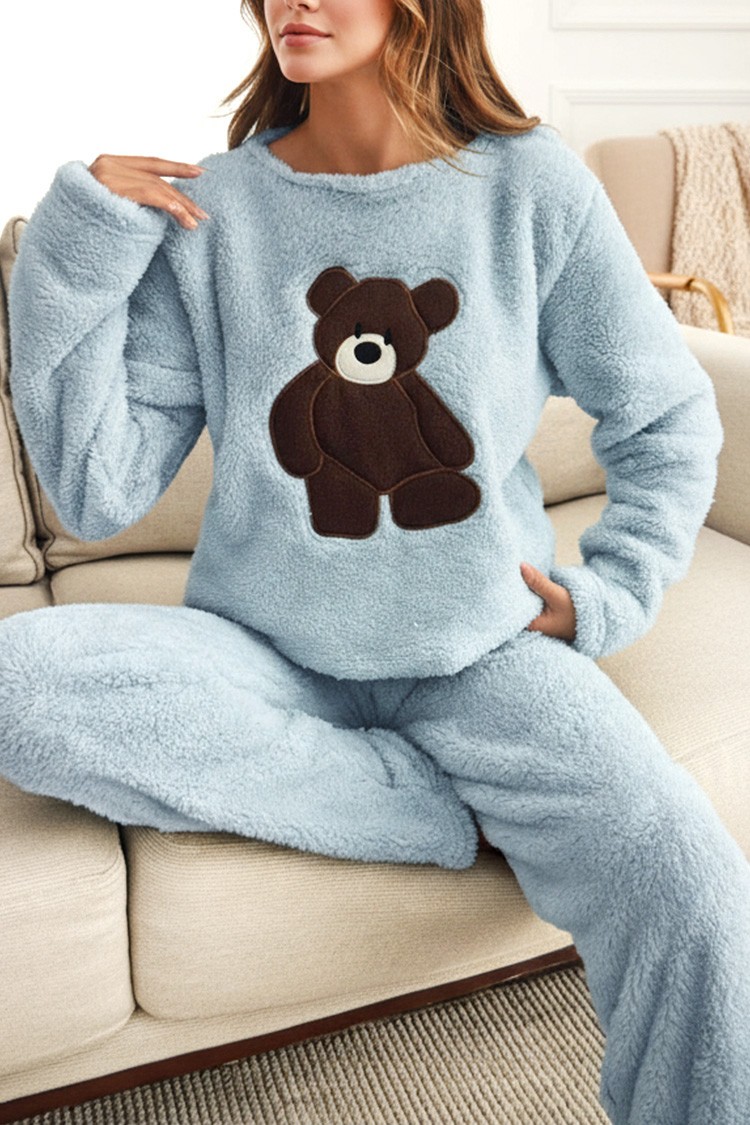 - A felső látványos mackós mintával rendelkezik, a nadrág pedig magas derekú és laza szabású.