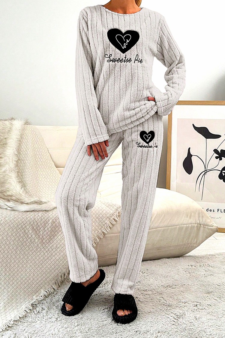 - A felső látványos szives mintával rendelkezik, a nadrág pedig magas derekú és laza szabású.
