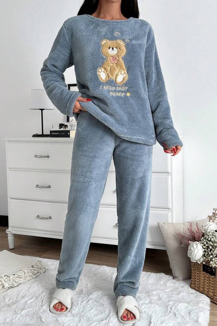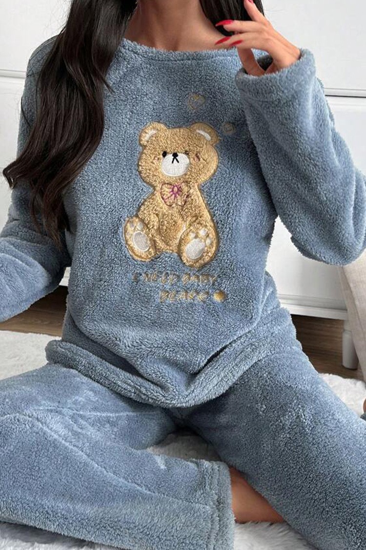 - A felső látványos maci mintával rendelkezik, a nadrág pedig magas derekú és laza szabású.