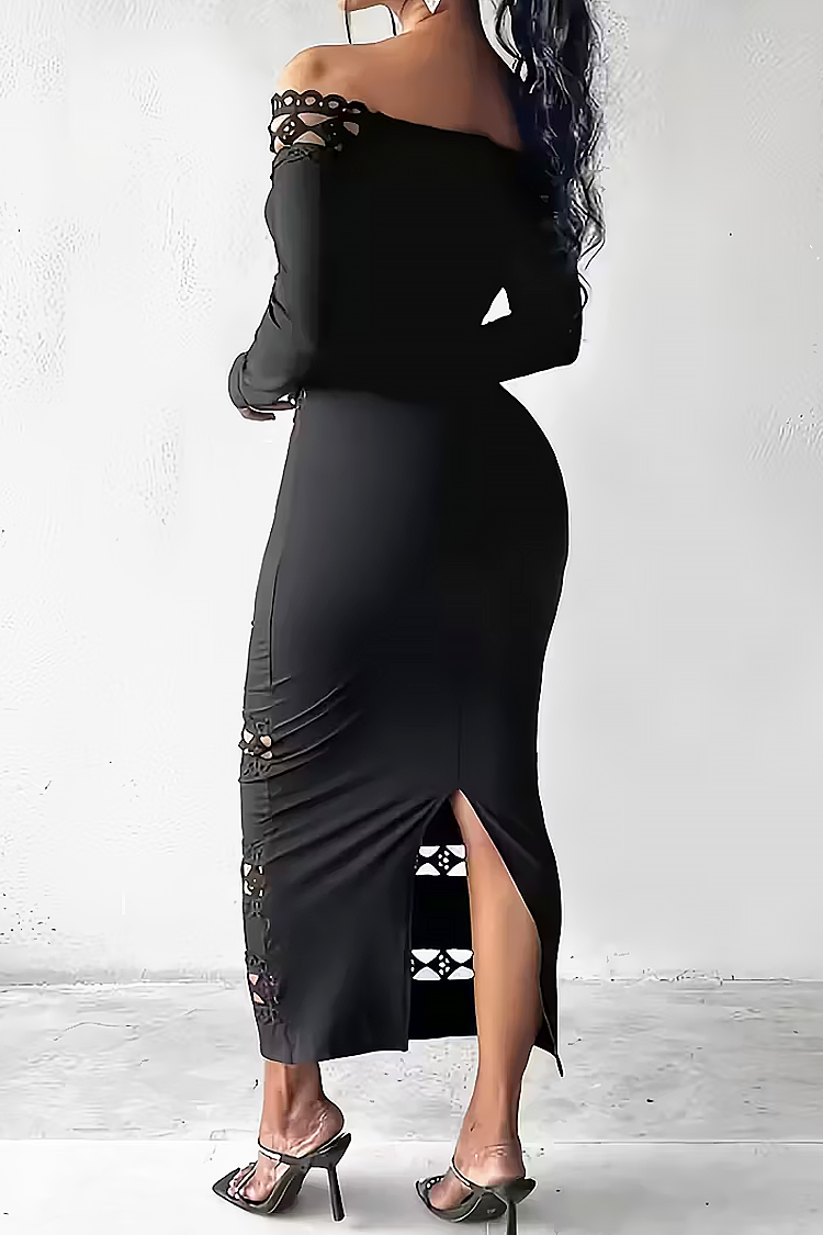 - A ruha testhezálló szabással, hosszú ujjakkal, ejtett vállal és szexi kivágásokkal rendelkezik.