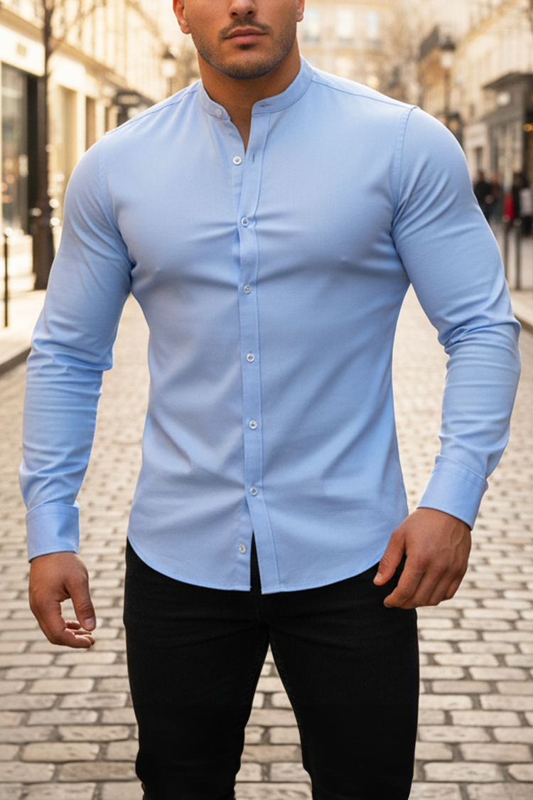 - Elegáns férfi ing klasszikus dizájnnal, világoskék színben, különféle divatos kombinációkhoz illő.