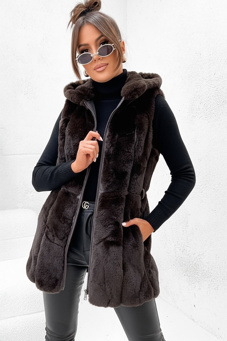 - A mellény klasszikus szabású, kényelmes kapucnival és hosszú fazonnal rendelkezik.