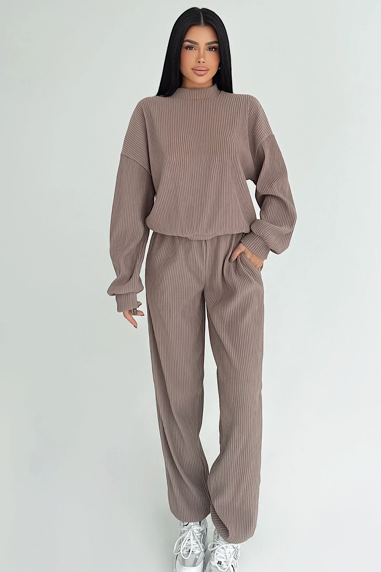 - Egy látványos kétrészes szett - kényelmes nadrág és egy blúz.