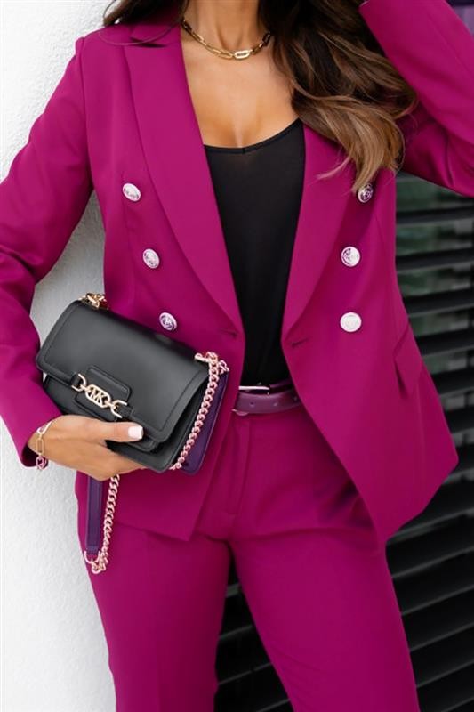 - Divatos színű kétrészes szett - nadrág és blézer, amely illik a stílusos mindennapokhoz.