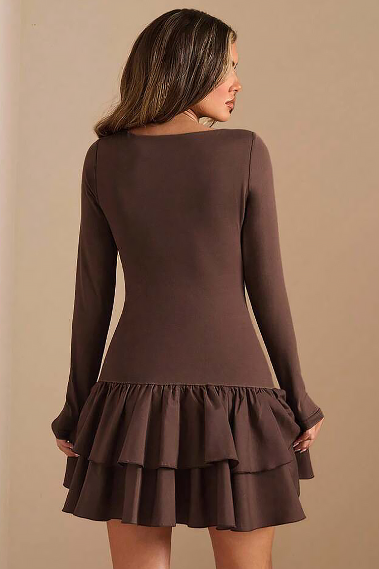 - A ruha hosszú ujjú, testhezálló szabású és rövid fazonú.