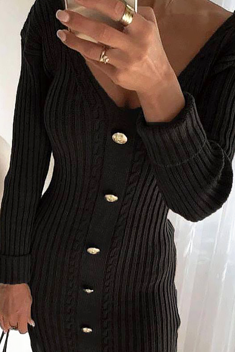 - A ruha rövid fazonú, szexi nyakkivágású és látványos gombos dizájnnal rendelkezik.