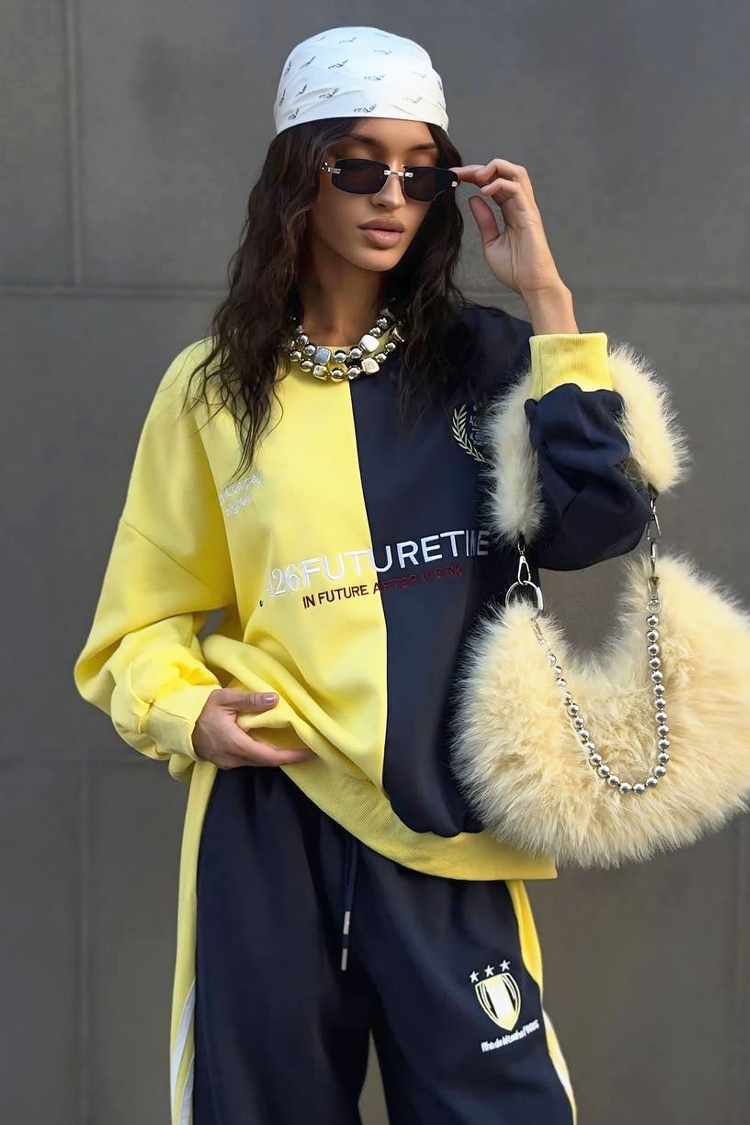 - Női kétrészes szett mindennapi viseletre kétszínnel kombinálva.