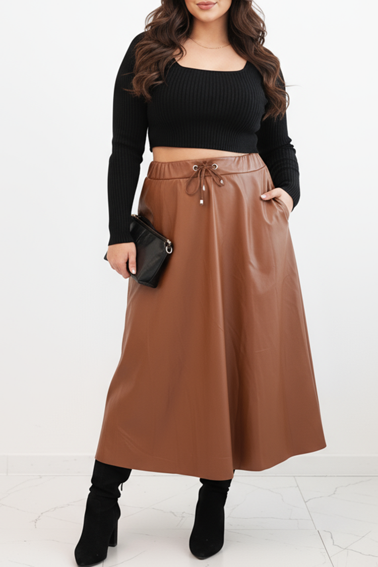 - A midi szoknya aktuális modellje eko bőrből, mindennapi viseletnek.