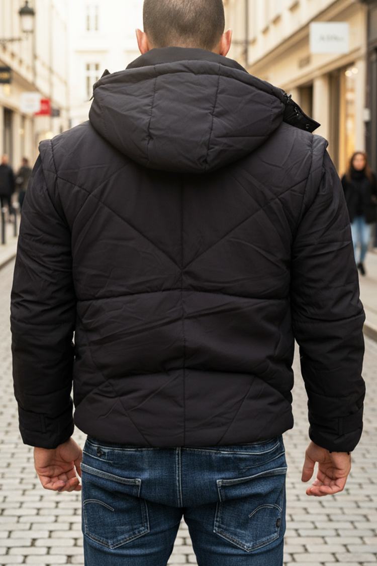 - Trendi férfi téli kabát-mellény, amely ötvözi az elegáns városi stílust és a praktikumot.