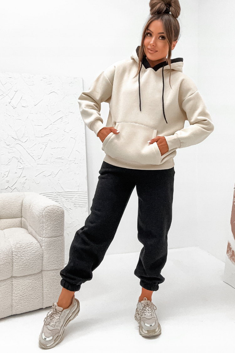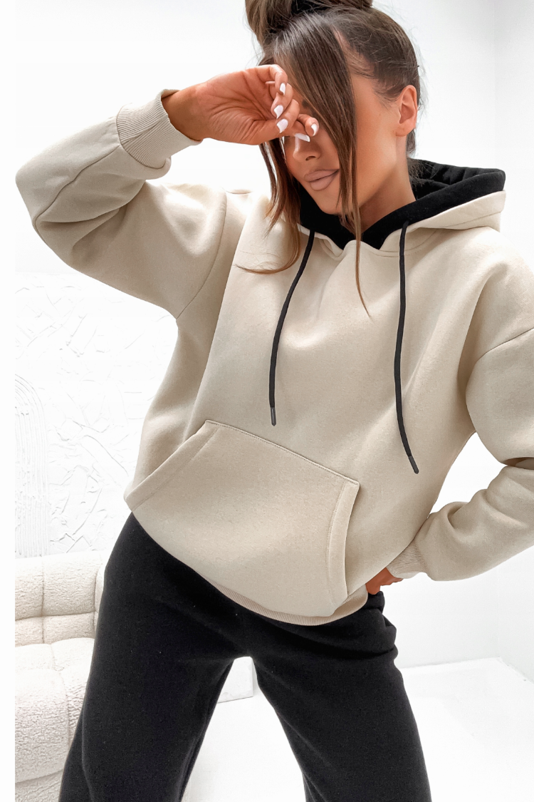 - A felsőrész egy bő szabású, kapucnis pulóver.