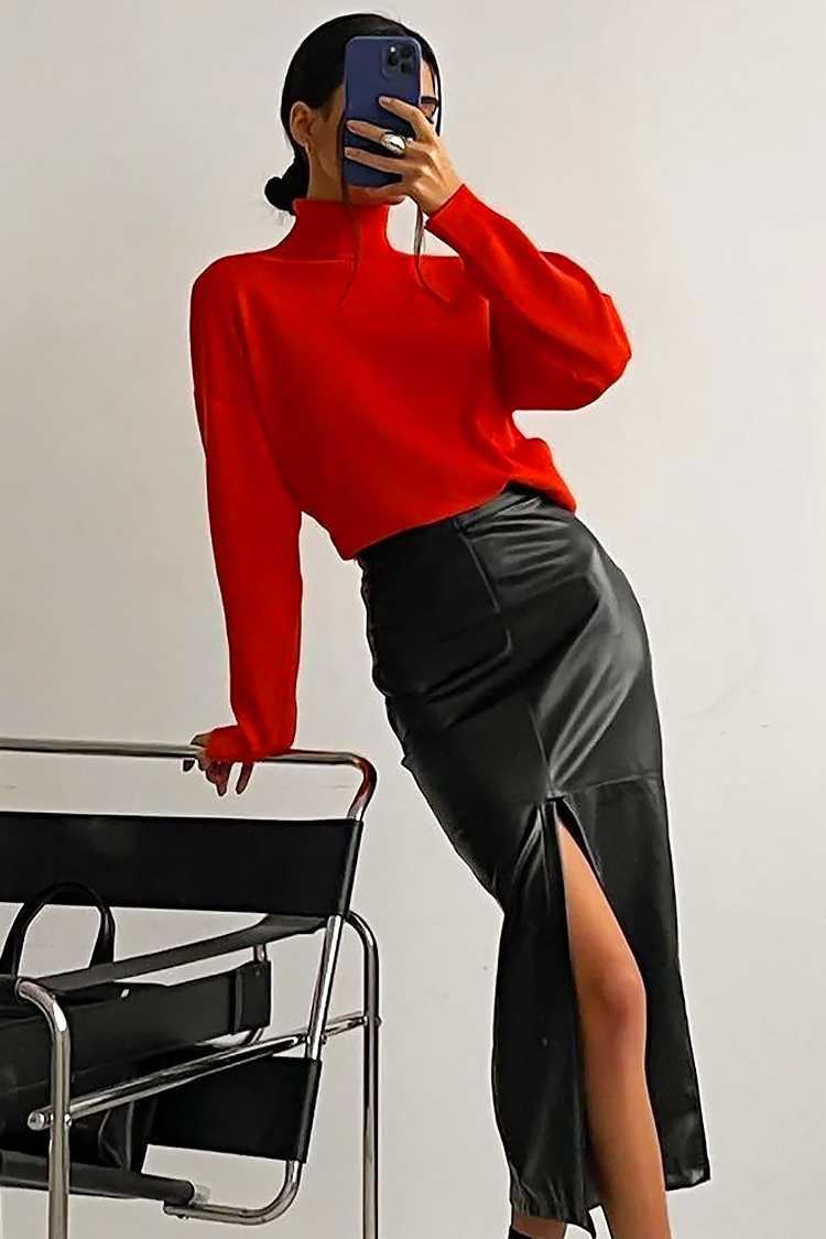 - Bő szabásvonallal, amely minden alkathoz illik, magas nyakkal.