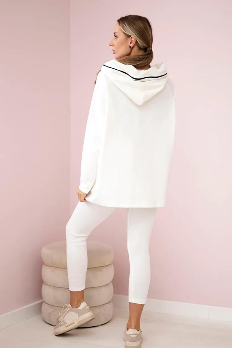 - Vonzó kétrészes szett, amely egy kapucnis pulóverből és egy leggingsből áll - mindennapi életre és sportoláshoz.