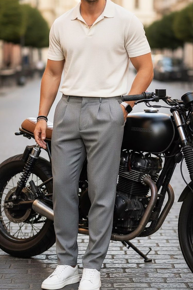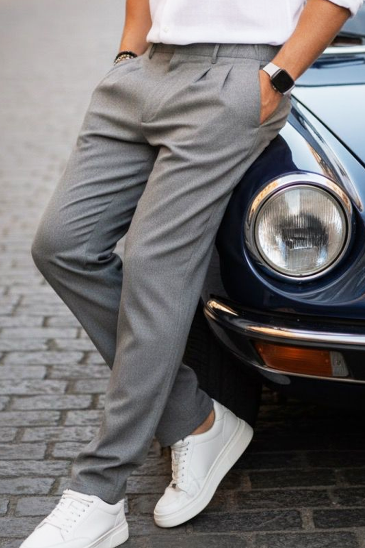 - Stílusos szürke férfi nadrág letisztult dizájnnal, zsebekkel és egyenes szárral, amiben minden tekintetet magadra vonzol.