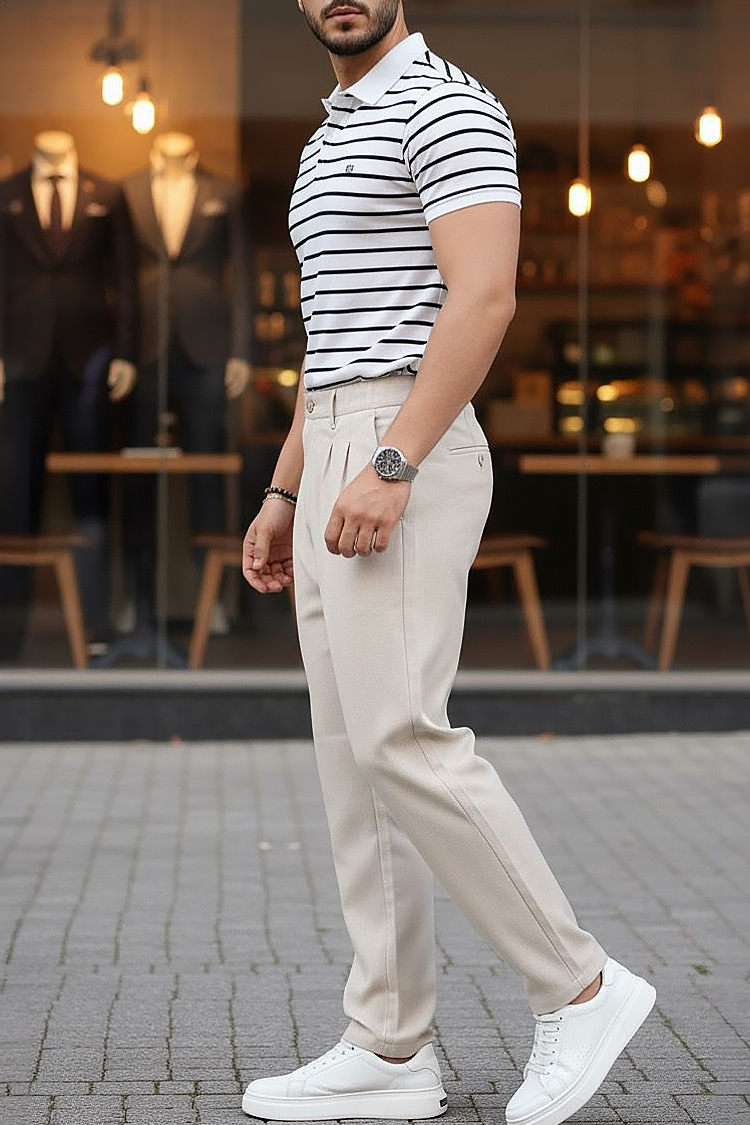 - Stílusos ekrü férfi nadrág letisztult dizájnnal, zsebekkel és egyenes szárral, amiben minden tekintetet magadra vonzol.