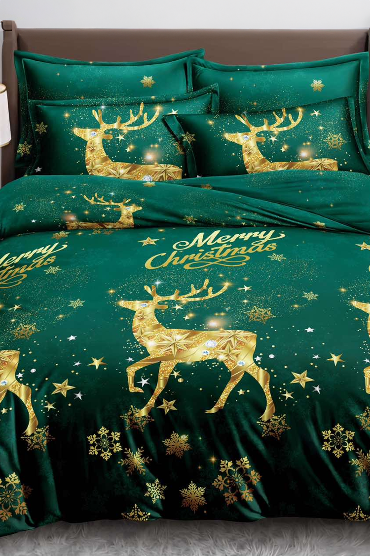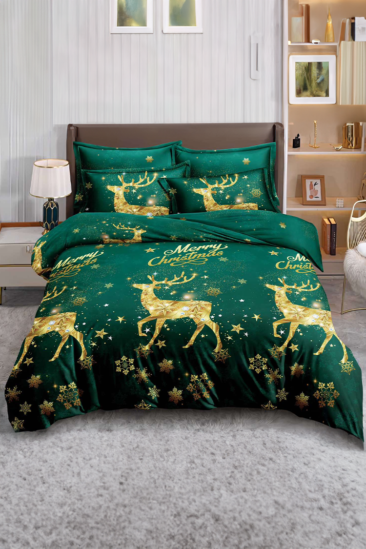 - Négyrészes karácsonyi ágyneműhuzat-garnitúra, mérete 200x220 cm, mérete kiváló minőségű pamutszaténból.