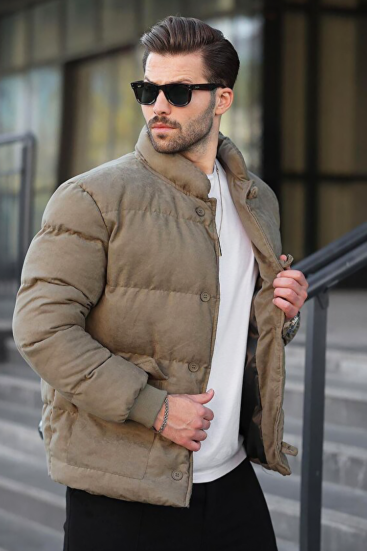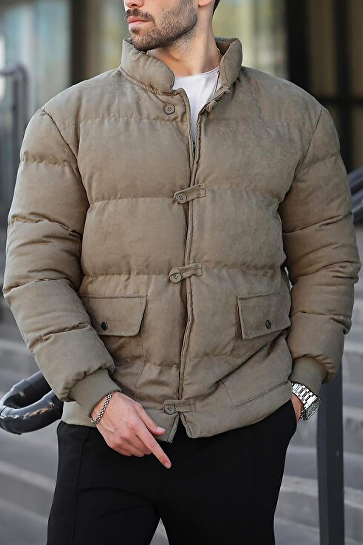 - Praktikus khaki férfi dzseki, hideg napokra.