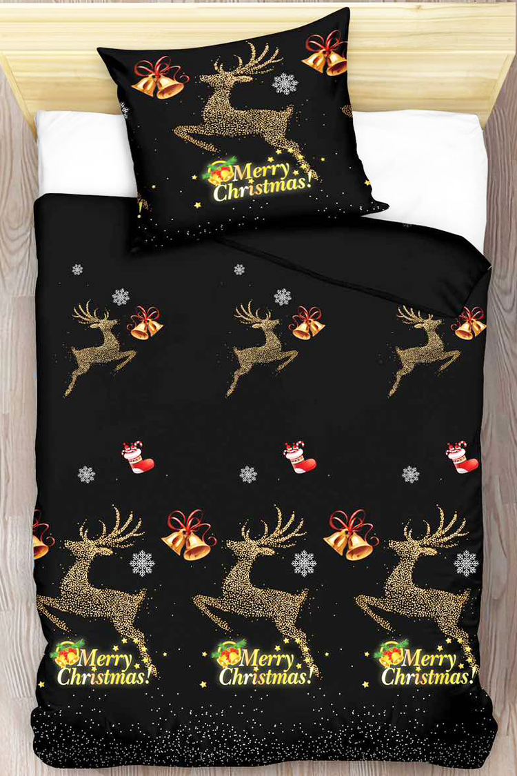 - Kétrészes, 140x200 cm-es ágyneműhuzat-garnitúra, kiváló minőségű, karácsonyi motívumokkal díszített pamutszaténból.