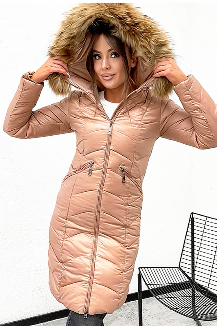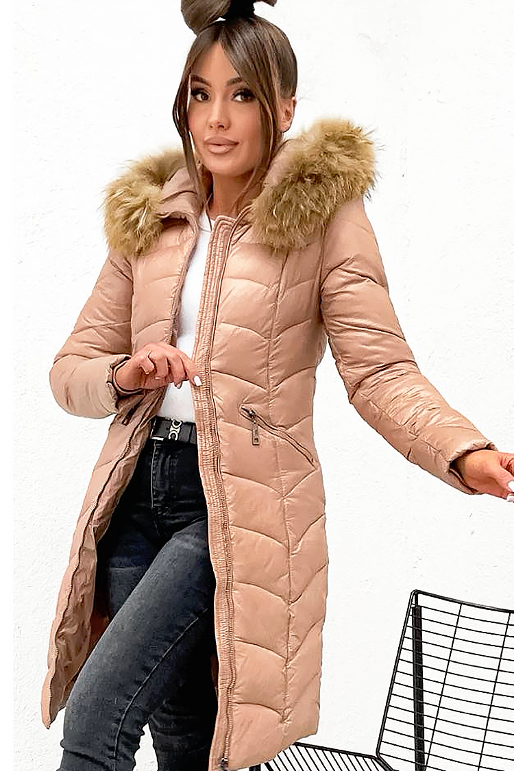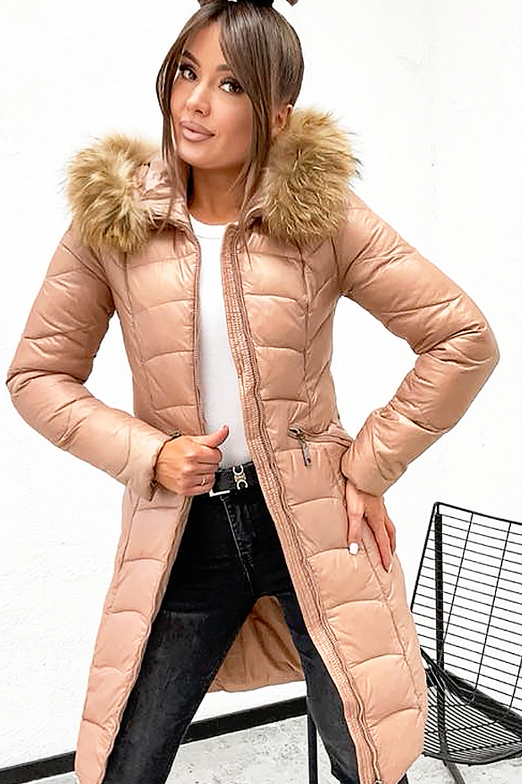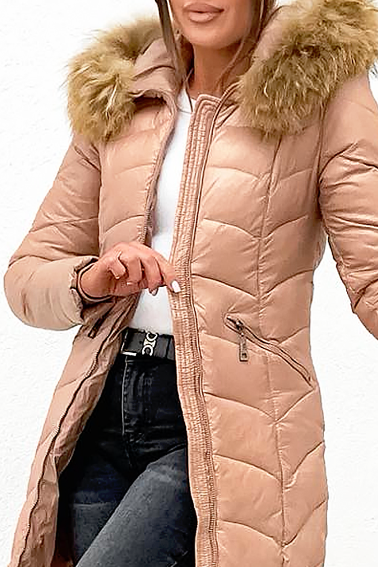 - A modell kényelmes szabással, praktikus zsebekkel, cipzáras záródással a nagyobb kényelem érdekében és szörmével ellátott kapucnival rendelkezik.