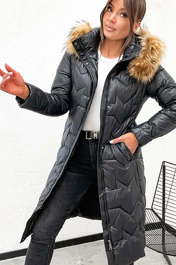 - A modell kényelmes szabással, praktikus zsebekkel, dupla cipzáras és gombos záródással, valamint szörmés kapucnival rendelkezik.