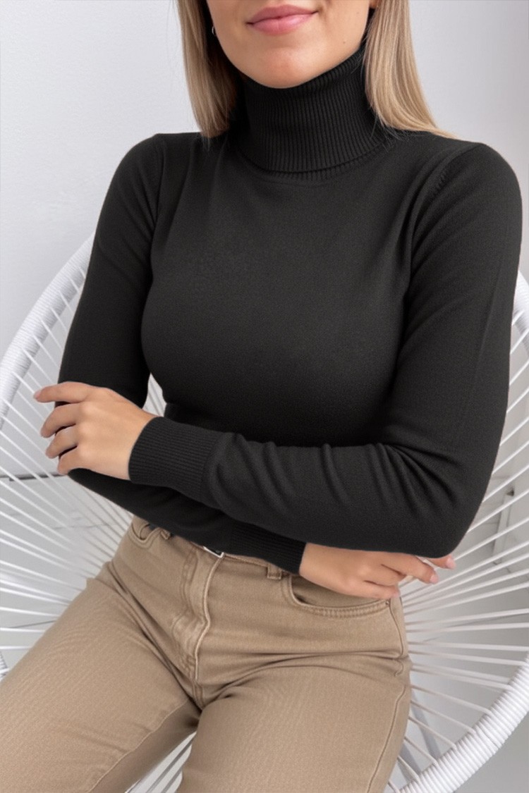 - A modell hosszú ujjú, testhezálló szabású és elegáns magas nyakkal rendelkezik.