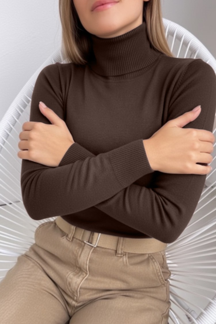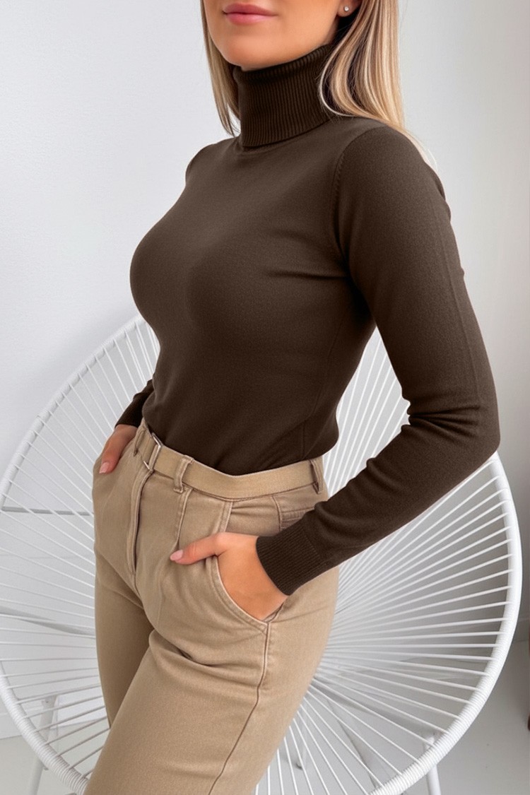 - A modell hosszú ujjú, testhezálló szabású és elegáns magas nyakkal rendelkezik.