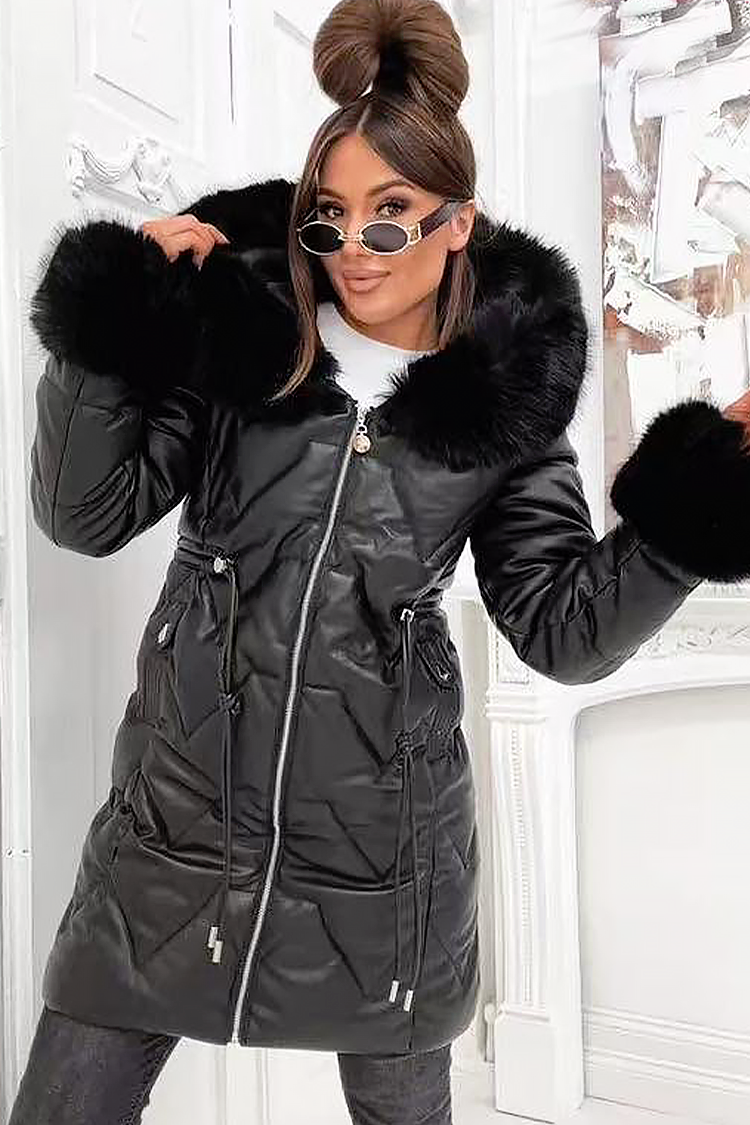 - A modell kényelmes szabással, szőrmés kapucnival és hosszában cipzárral rendelkezik.