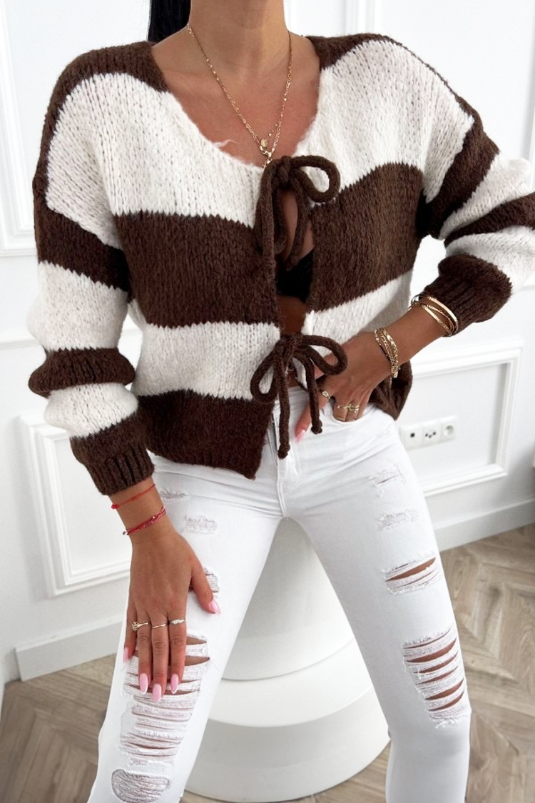 - Női kardigán kétszínnel kombinálva, alkalmas őszi divatos megjelenéshez.