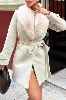 - A modell klasszikus szabású, levehető szőrmegallérral és ugyanabból az anyagból készült övvel rendelkezik.