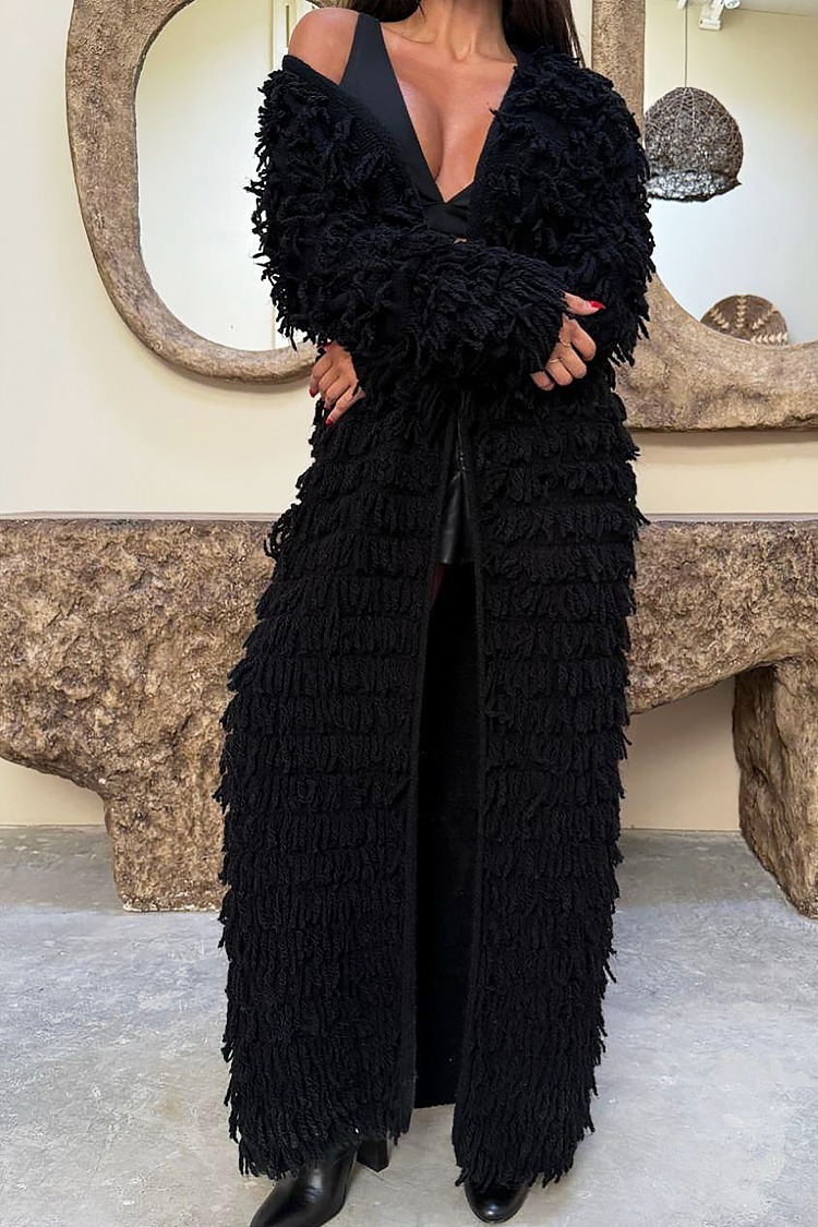 - Puha és hosszú női kardigán divatos szabással, amely alkalmas a mindennapi divatos megjelenéshez.