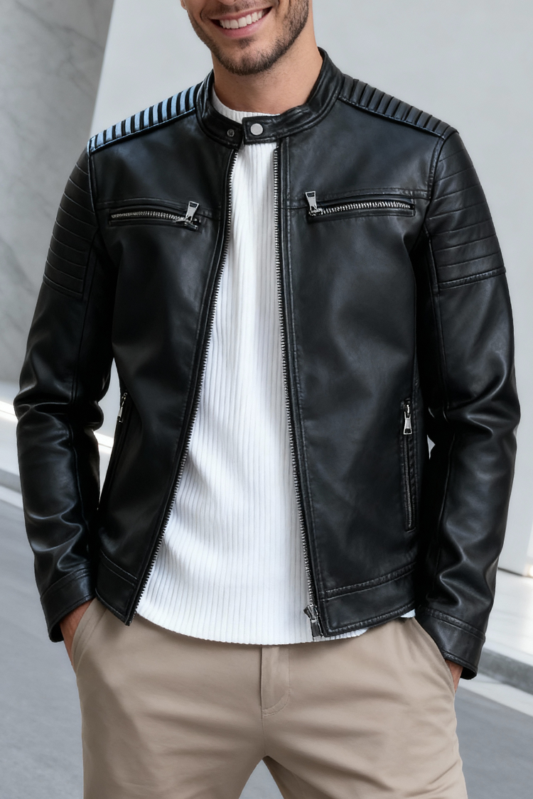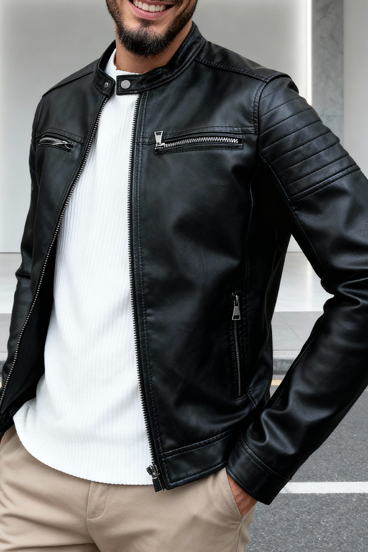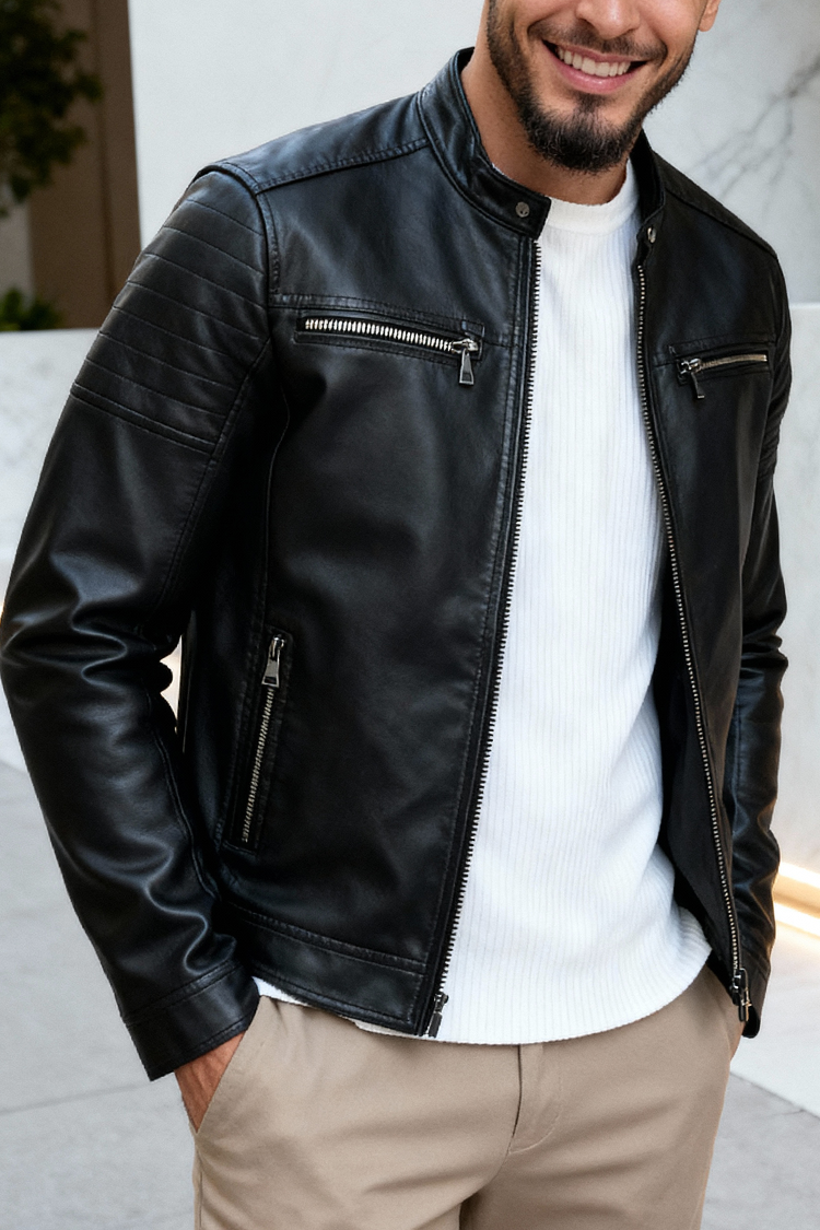 - Vonzó fekete dizájnú férfi kabát hűvösebb napokra.