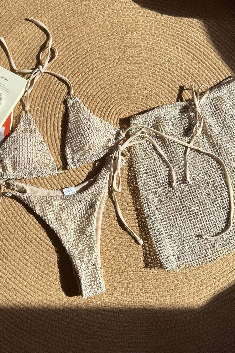 - A szett háromrészes és vonzó dizájnnal rendelkezik, amely kiemeli az egyedi stílusodat és arcszínedet! A felsőrész kivehető mellbetéttel rendelkezik, amely formálja a dekoltázst.