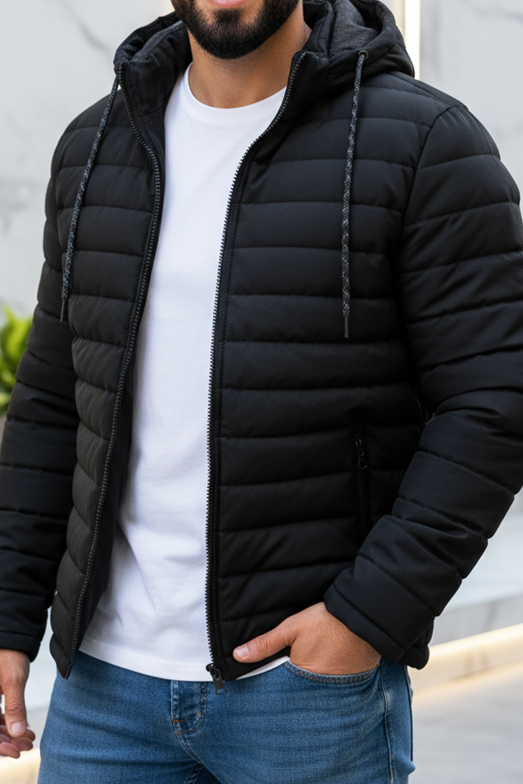 - Bemutatjuk különleges ajánlatunkat: férfi téli dzseki divatos dizájnnal, fekete színben.