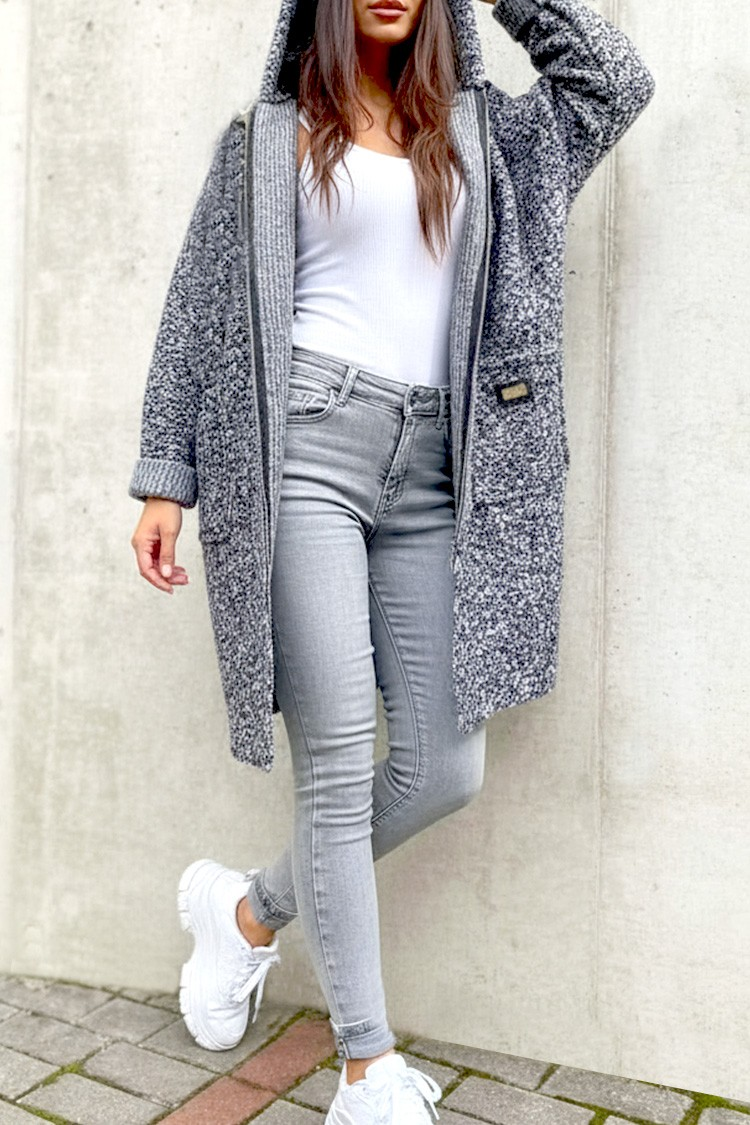 - Puha és hosszú női kardigán divatos szabással, mindennapi megjelenésre alkalmas.