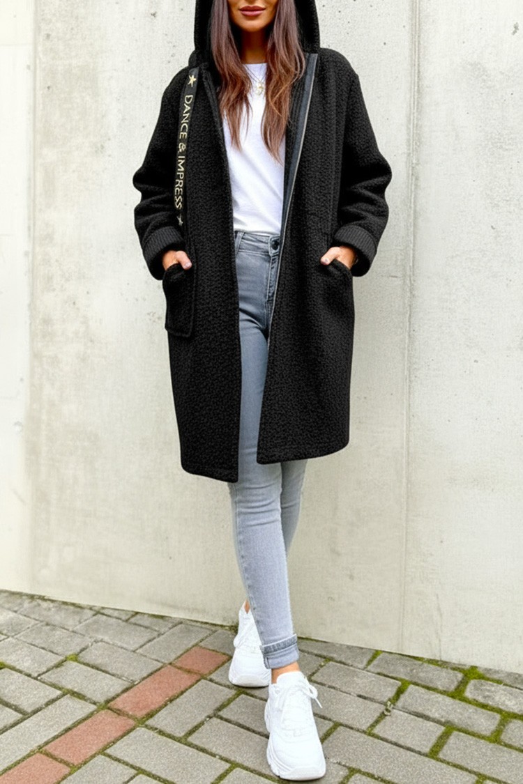 - A modell látványos szabással és hosszúsággal, praktikus zsebekkel, kapucnival és cipzáras záródással rendelkezik.