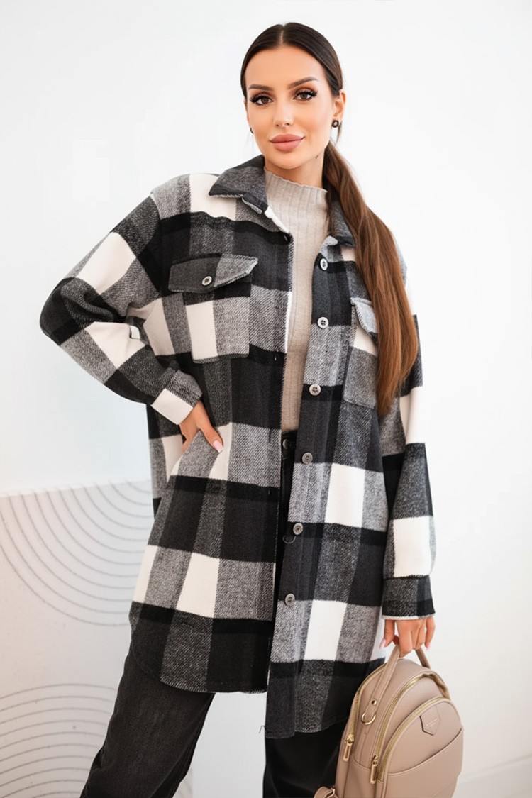 - A modell kockás mintával és standard gombos rögzítéssel rendelkezik.