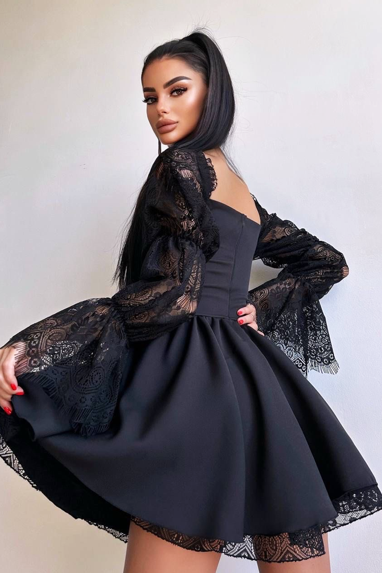 - A ruha szexi fazonú, szögletes nyakkivágású és hosszú ujjú.