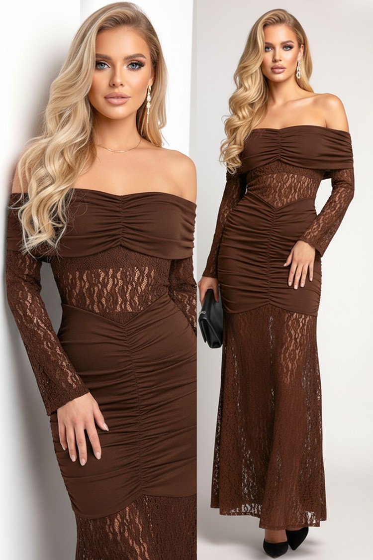 - A modell testhezálló szabású, hosszú ujjú, szexi, ejtett vállú és látványos csipkével rendelkezik.