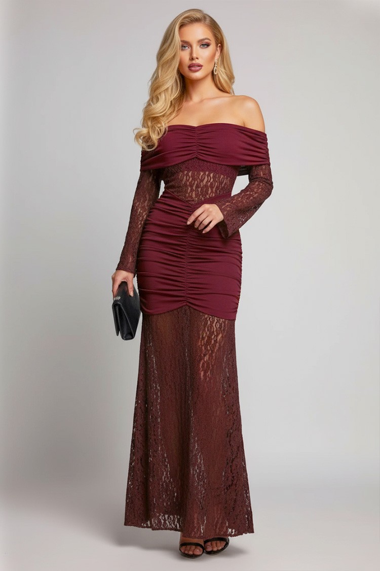 - A modell testhezálló szabású, hosszú ujjú, szexi, ejtett vállú és látványos csipkével rendelkezik.