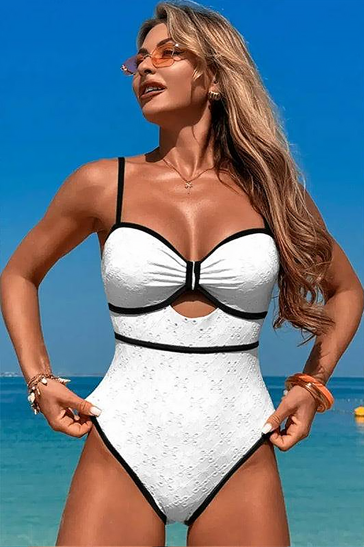 - Egyrészes fürdőruha két színnel kombinálva, alkalmas strand- és wellness nyaralásra.