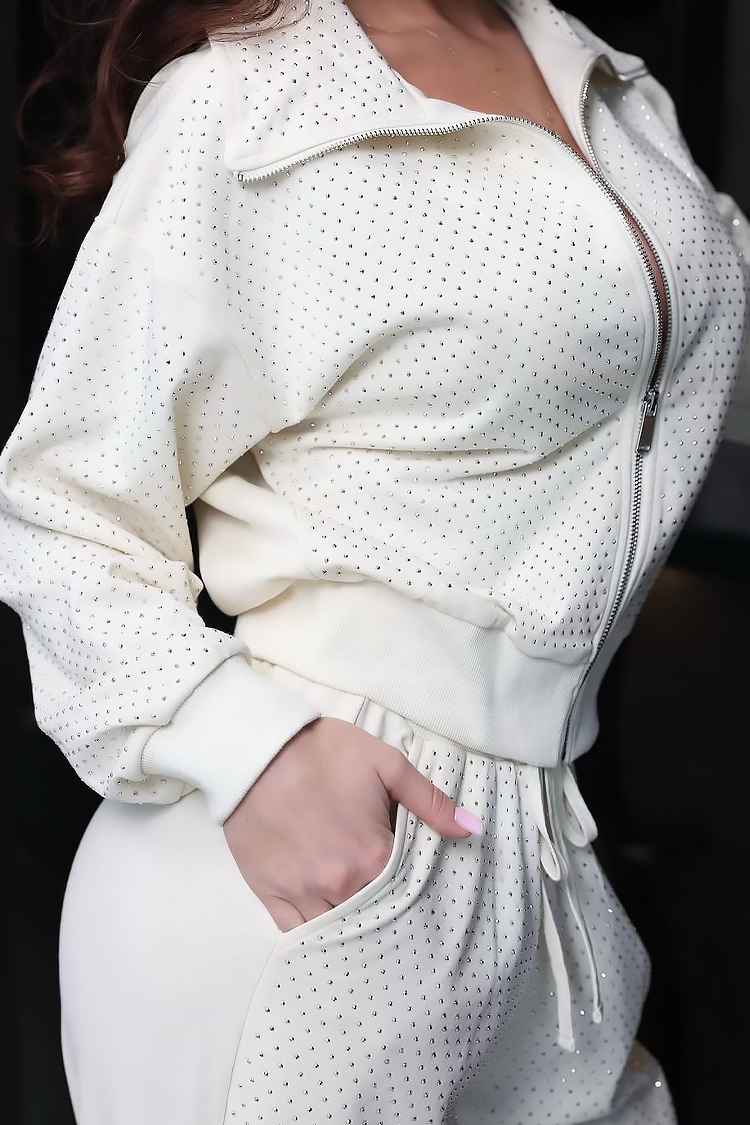 - Női mindennapi kétrészes szett csillogó elemekkel.