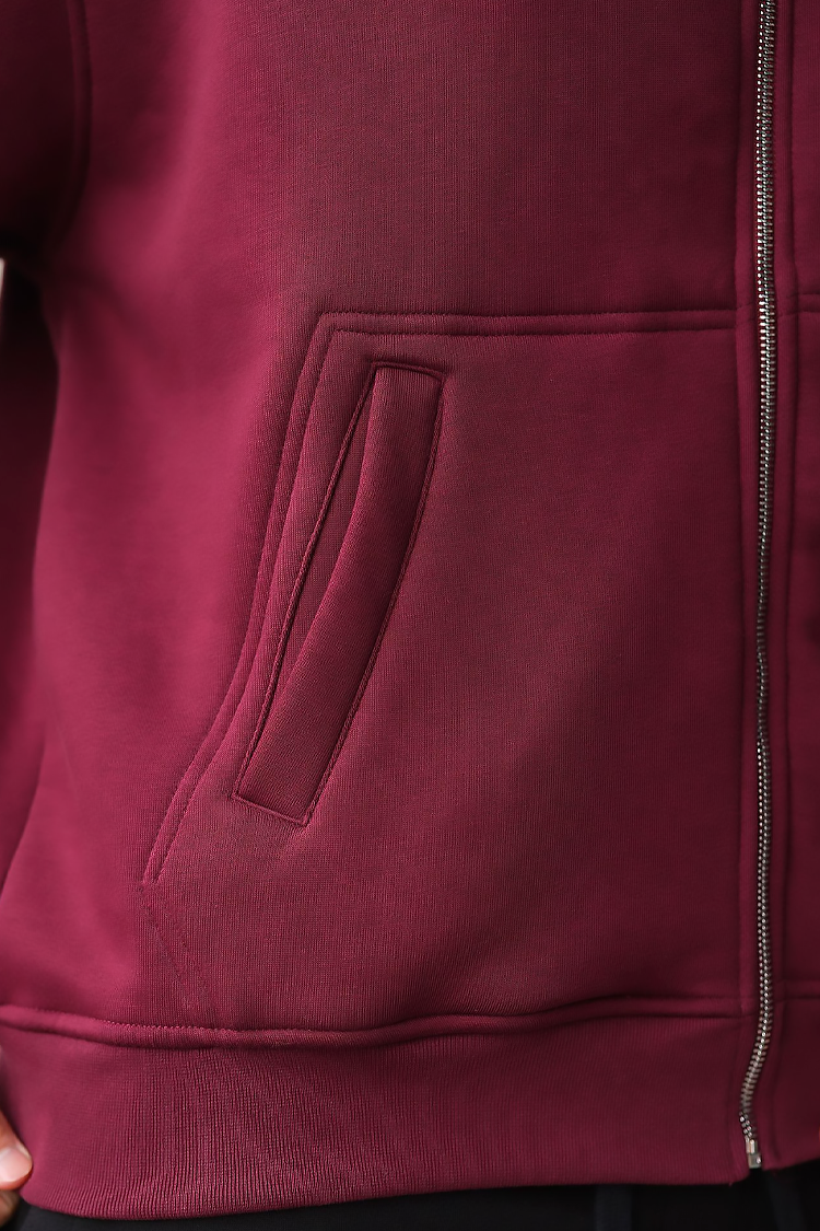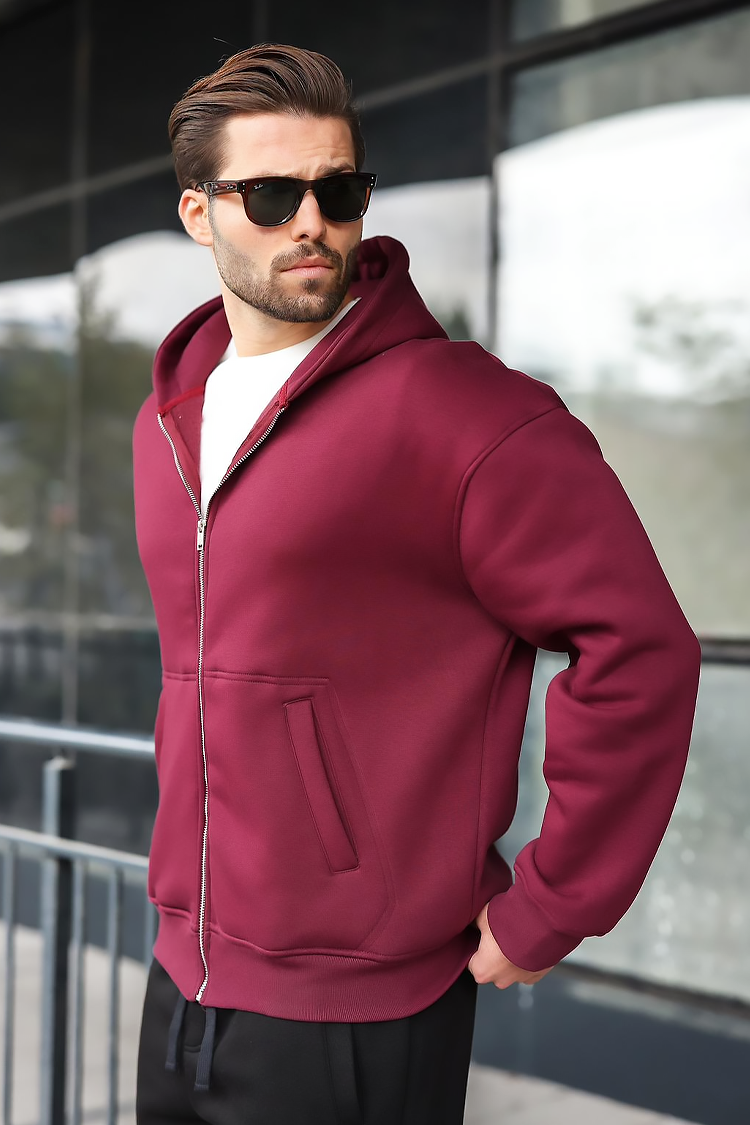 - Kényelmes férfi kardigán zsebekkel, bordó színben, mindennapi használatra, sportolásra vagy sétálásra.