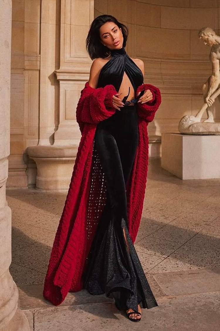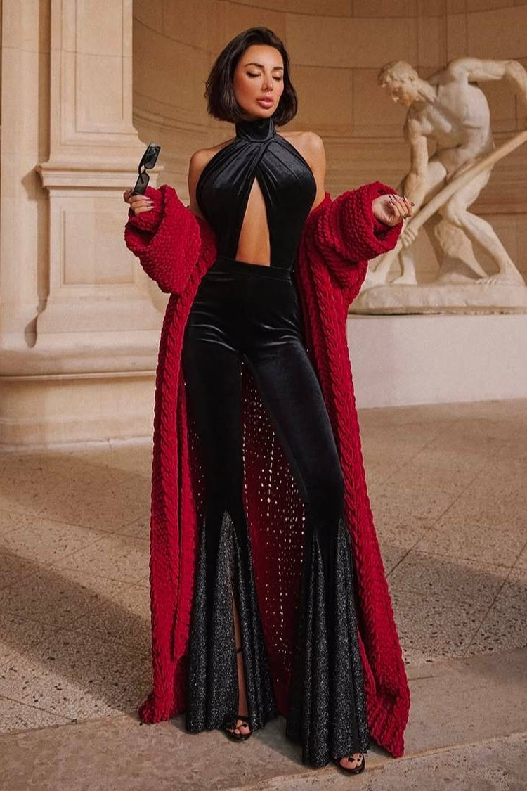 - Stílusos fekete overál, amely különféle kombinációkhoz és partikhoz illik.